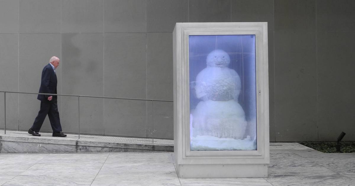 Draußen steht ein weißer mann, der sich niemals wärmen kann.